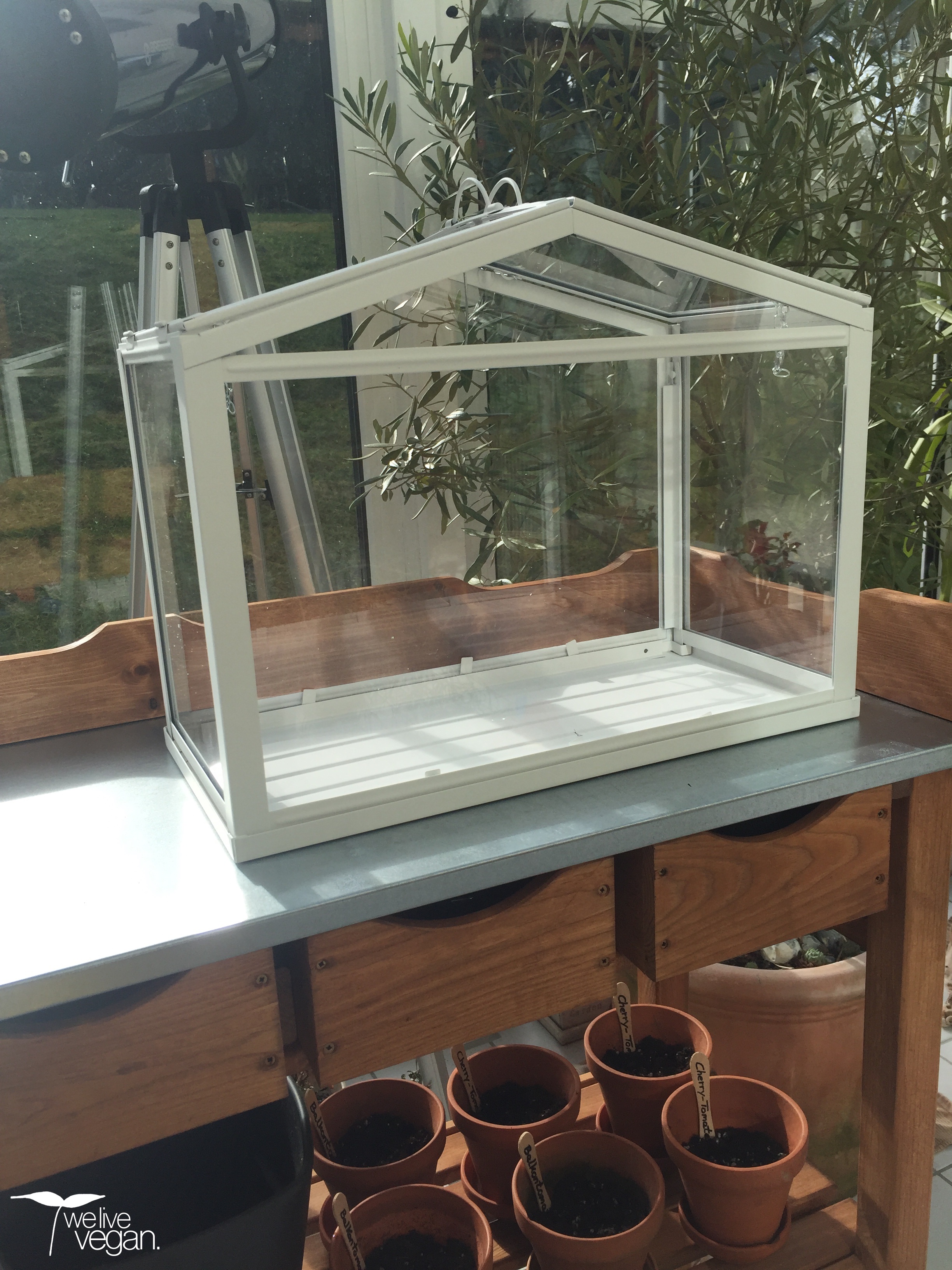 Zu diesem Zweck habe ich mir bereits im Winter ein sehr schönes Mini-Gewächshaus gekauft. Dieses sieht nicht nur sehr dekorativ aus, sondern bietet den Tomaten einen idealen Raum zum Keimen und Wachsen.
